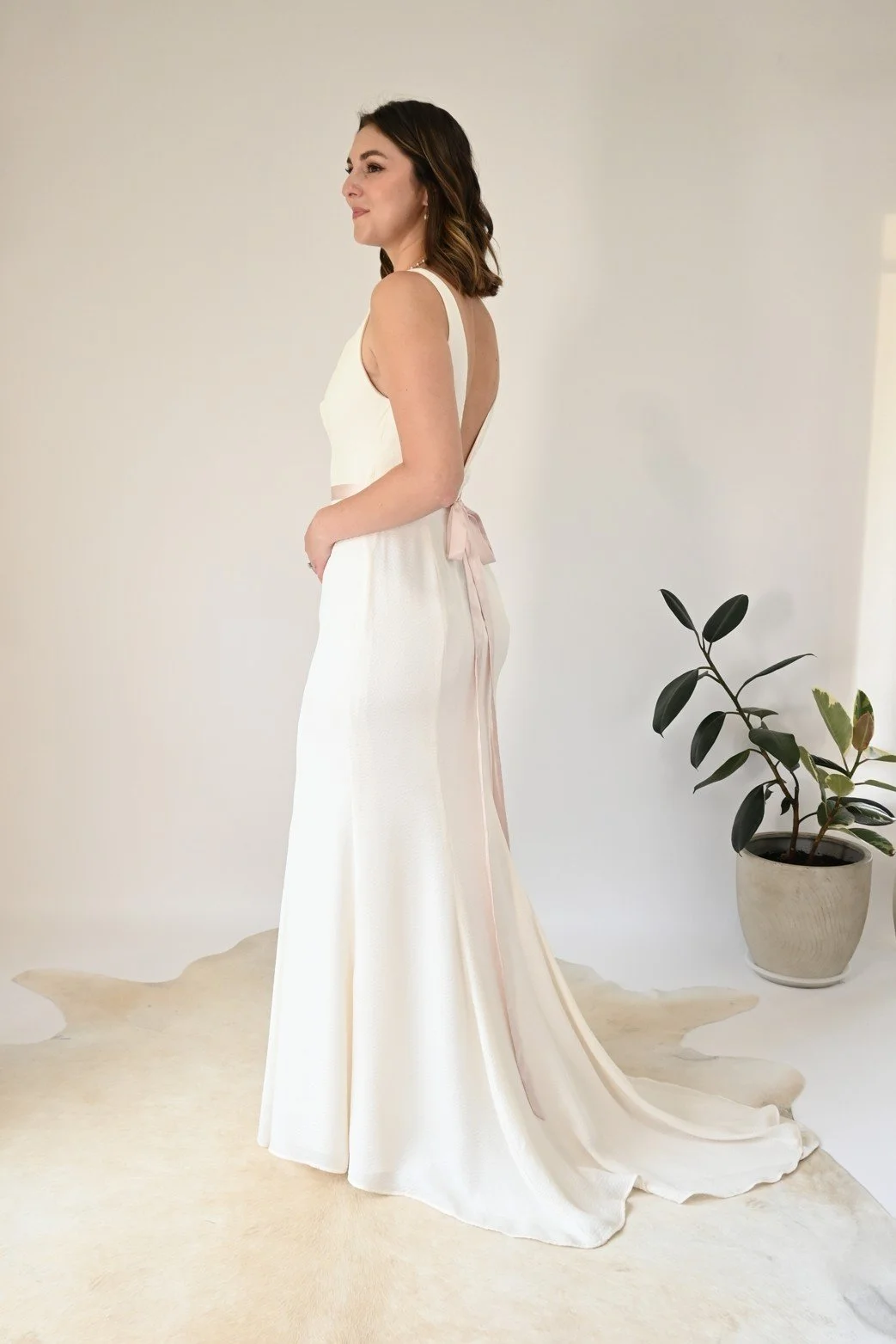Every gown is meticulously handmade in our Nashville bridal shop, where artistry meets couture. All our dresses are made in our bridal studio, ensuring a level of craftsmanship and personalization that is second to none. Brides may select from our exclusive collection of wedding dresses or collaborate with our designer to bring their dream dress to life—down to the finest detail. From the first sketch to the final fitting, we deliver an unparalleled experience. Designed and created in Nashville, your bridal gown will be flawlessly tailored and delivered on time for your unforgettable wedding day.